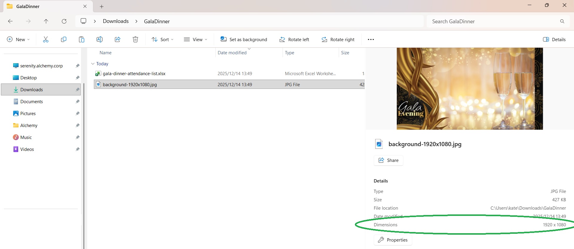 You can find out the height and width of your image by right-clicking on the file in File Explorer, and going to Properties.