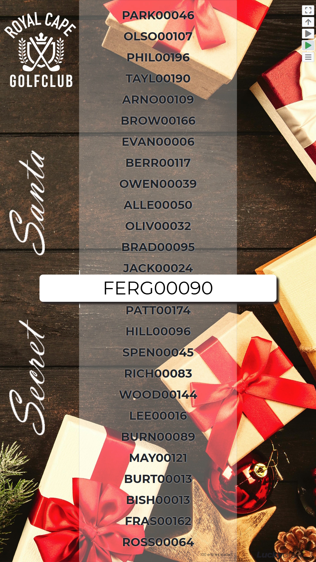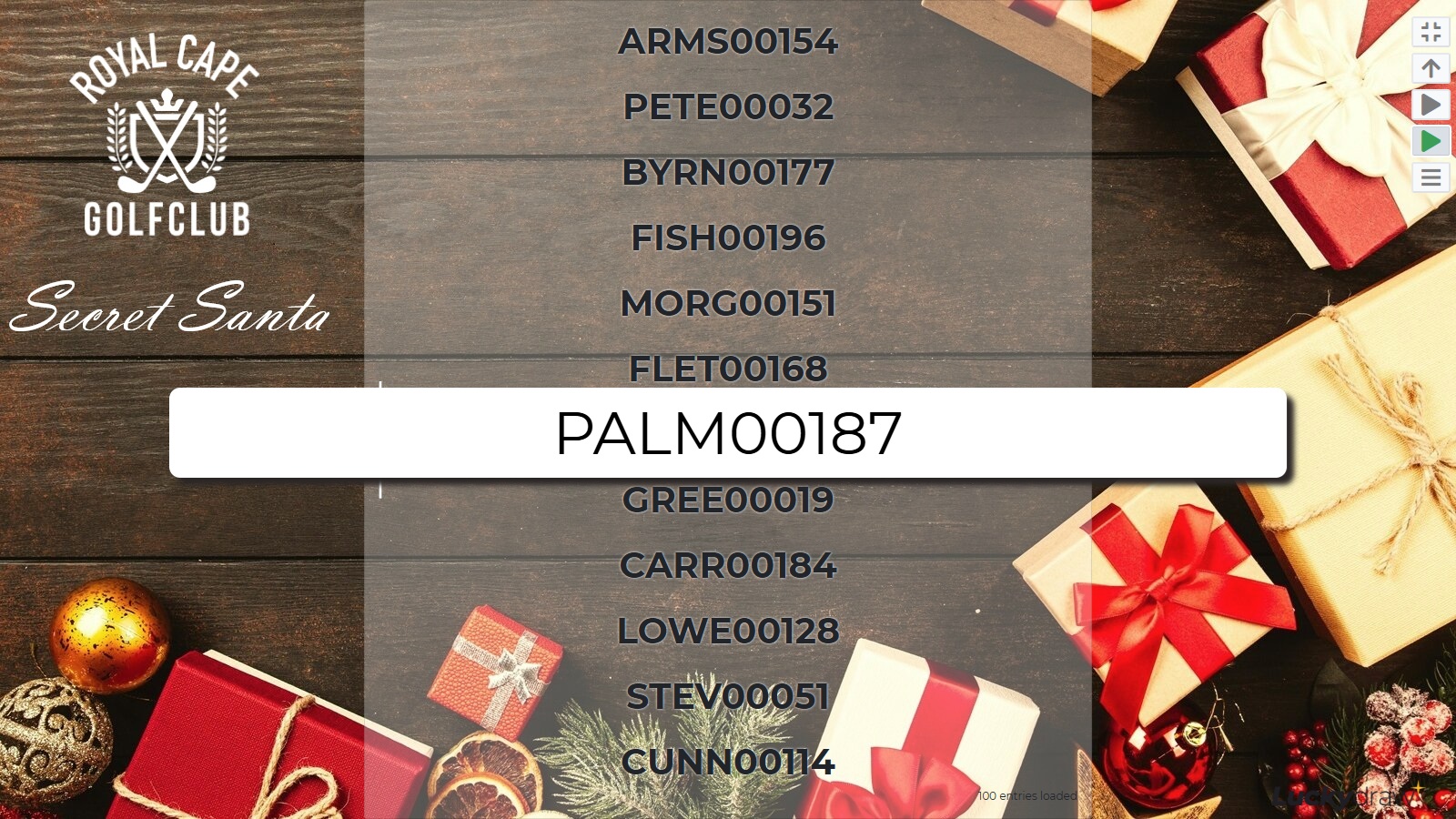 The winner certificate for this draw style shows the winning entry as well as any other entries that were on the screen at the time of the winner being picked.