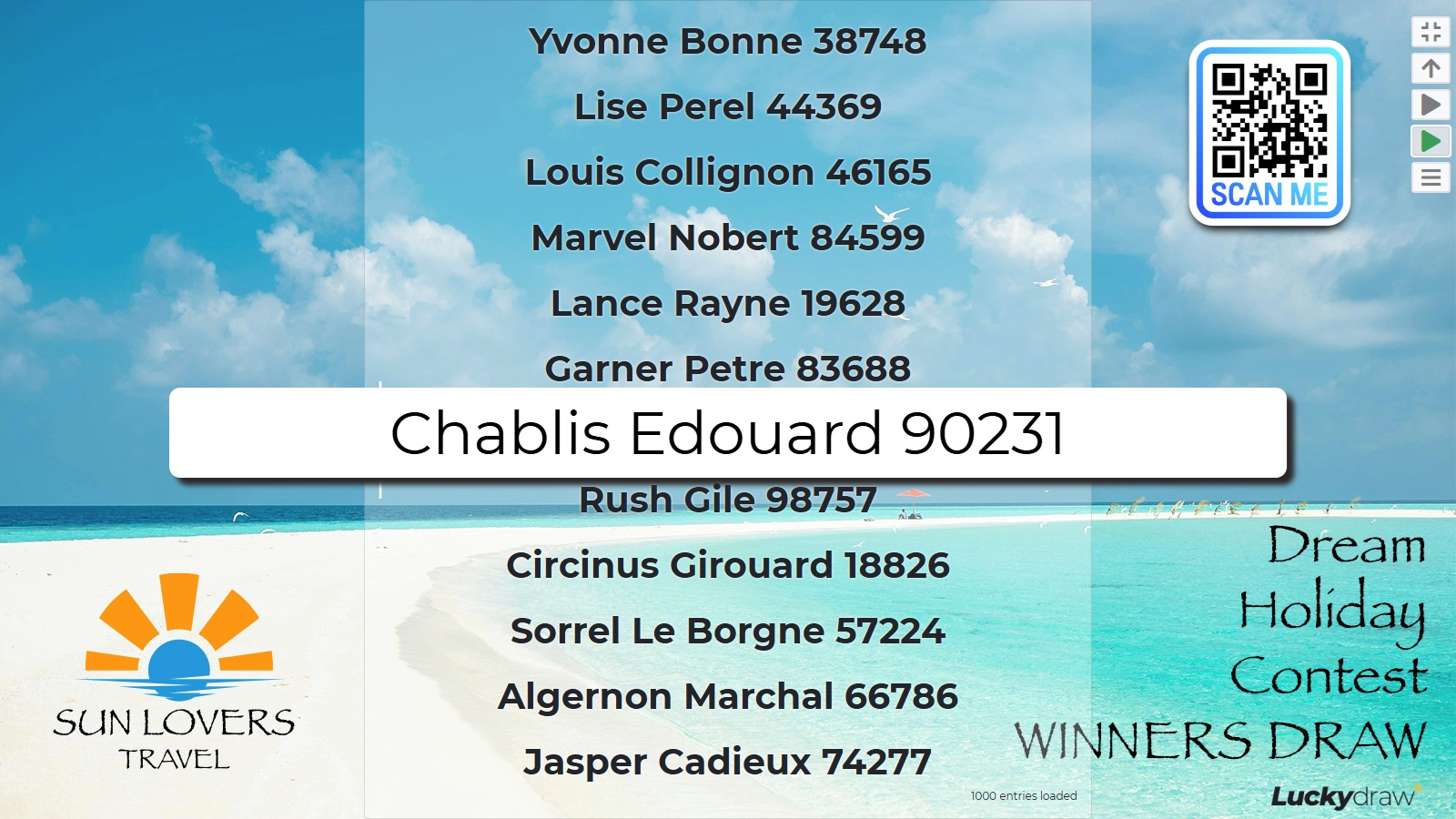 In this draw style, many possible entries scroll on the screen before your winner is picked.