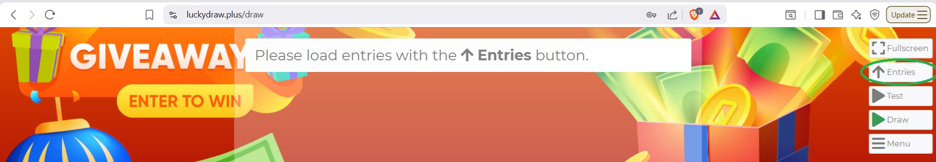 Using the Entries button, load entries for your draw.